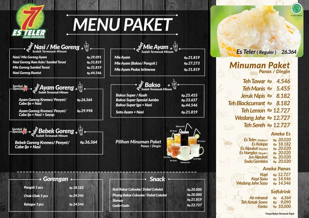 Es teler 77 aja yukk,,makanannya enak, harga terjangkau banget, halal dan ada gratis wifi nya lohhh.cuzz dehh ke . Menu es teler 77 binjai supermall. Cocok banget untuk buka puasa ditemenin sama menu es teler 77 dan teh botol sosro!. Daftar lengkap menu dan harga es teler 77 · es teler medium rp.20.000 · es teler reguler rp.26.364 · paket ayam goreng kremes+nasi rp.26.364 · paket ayam goreng . Makanan higienis, bersih, mudah dan harga terjangkau di tengah pandemi.